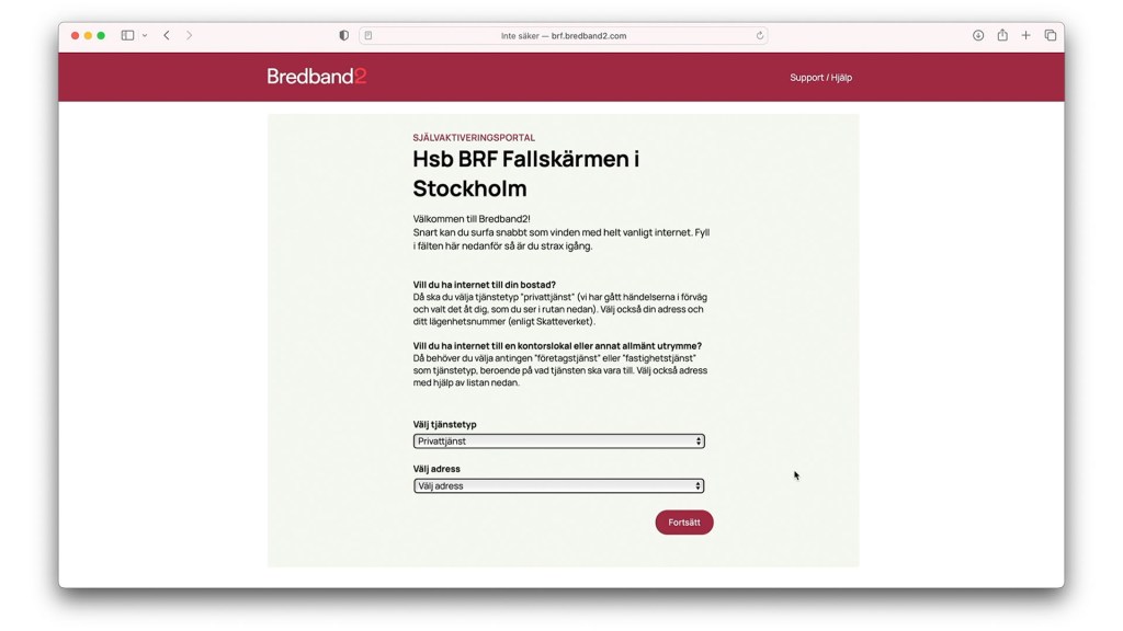 För support kontakta Bredband2 på 0770-811 000 eller be andra medlemmar om hjälp på föreningens FB-grupp