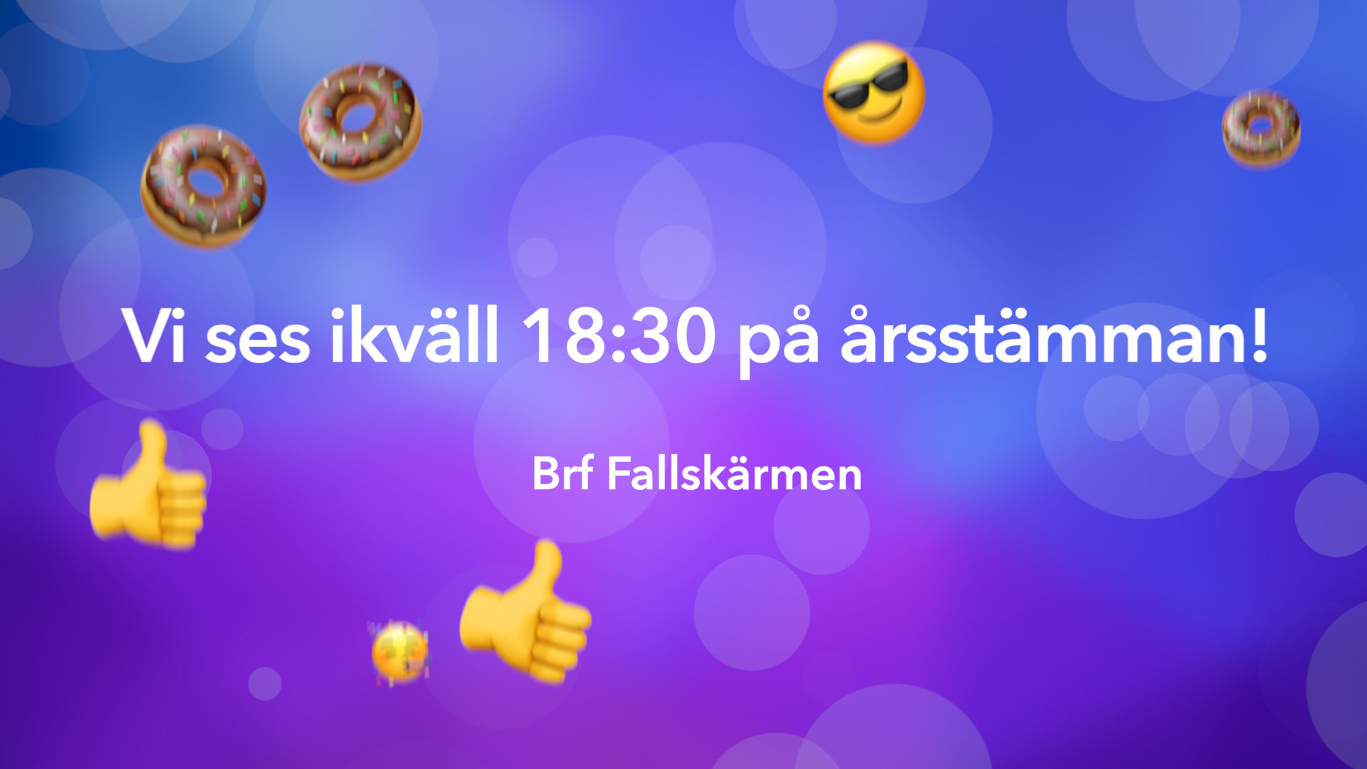 🇬🇧 To all members of Brf Fallskärmen. Tenants may attend but do not have voting rights.