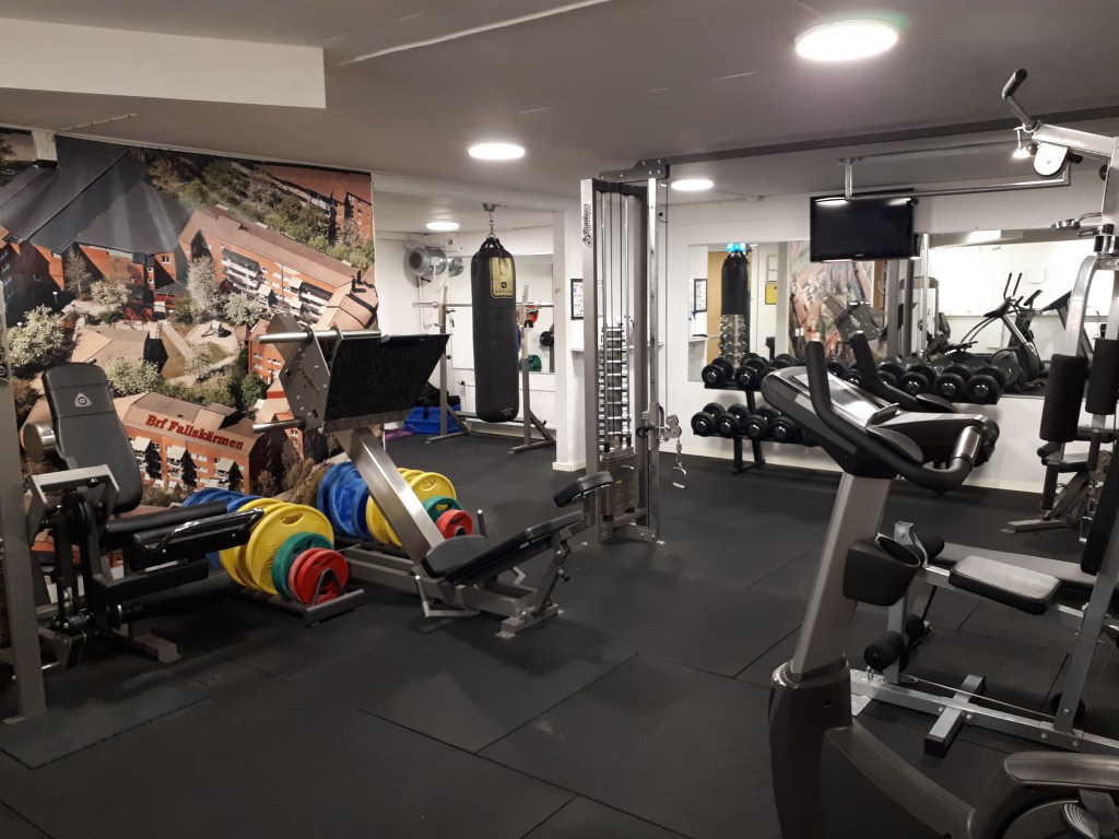 Access till gymmet kostar 71 kr/månad (hösten 2024) per familj. Mejla styrelsen för mer information, brf.fallskarmen@gmail.com