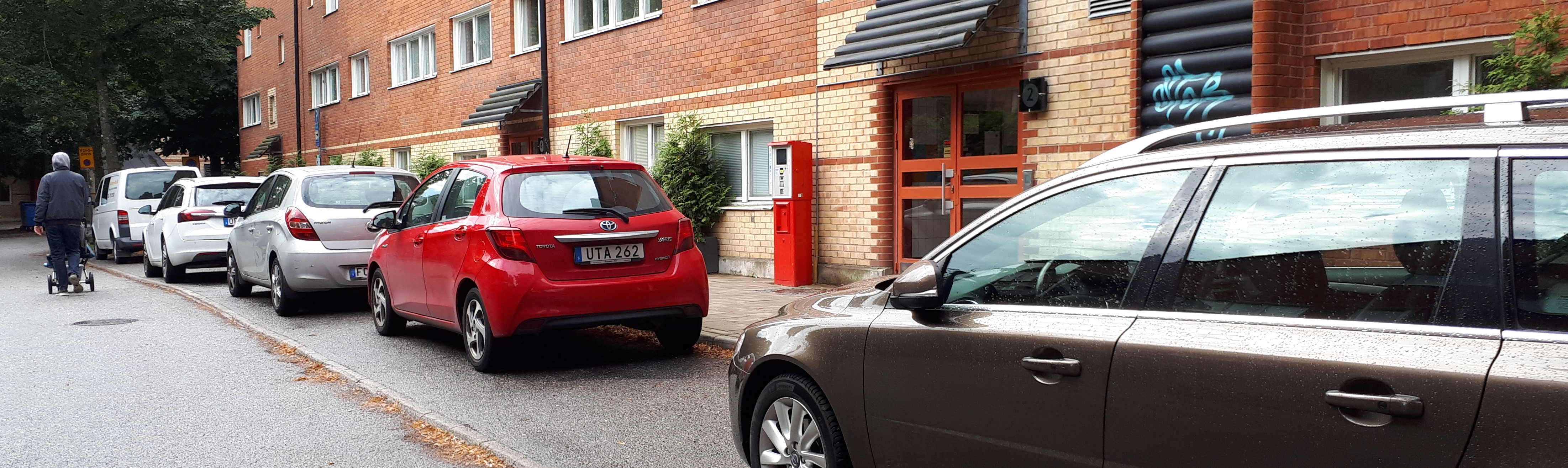 Den allmänna parkeringsplatsen på den sidan av Fallskärmsgatan som har de jämna nummer är stor nog för 6 personbilar minst. Vänligen både du själv och de som kommer till dig på besök – parkera bilen så att den inte upptar onödigt mycket plats. Kör längst fram eller ställ dig nära en föregående/bakomliggande bil. På så sätt bidrar du till att även din granne får chans att parkera sin bil. Tack för du visar hänsyn!